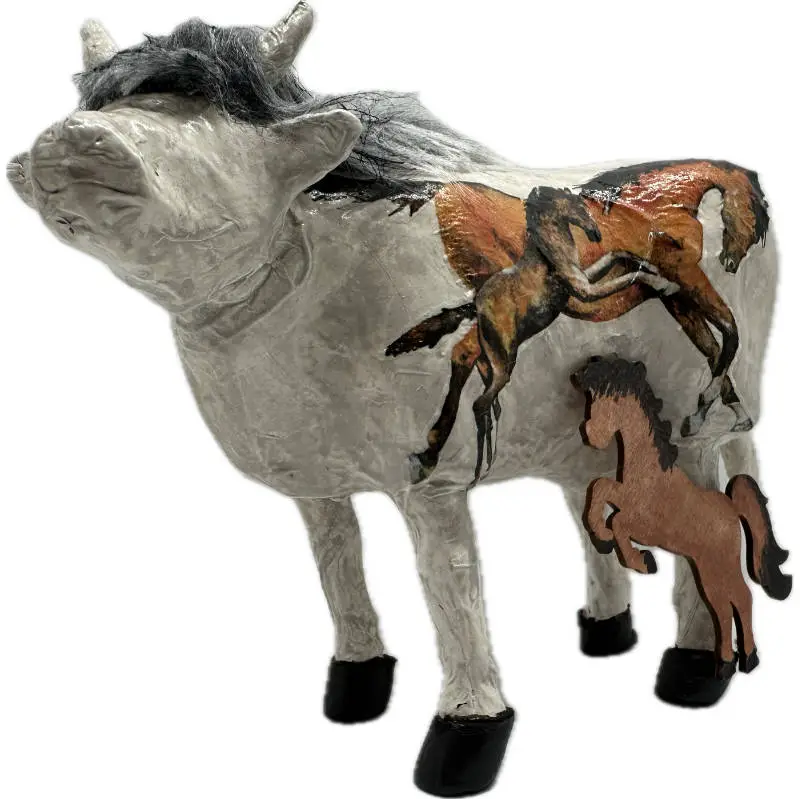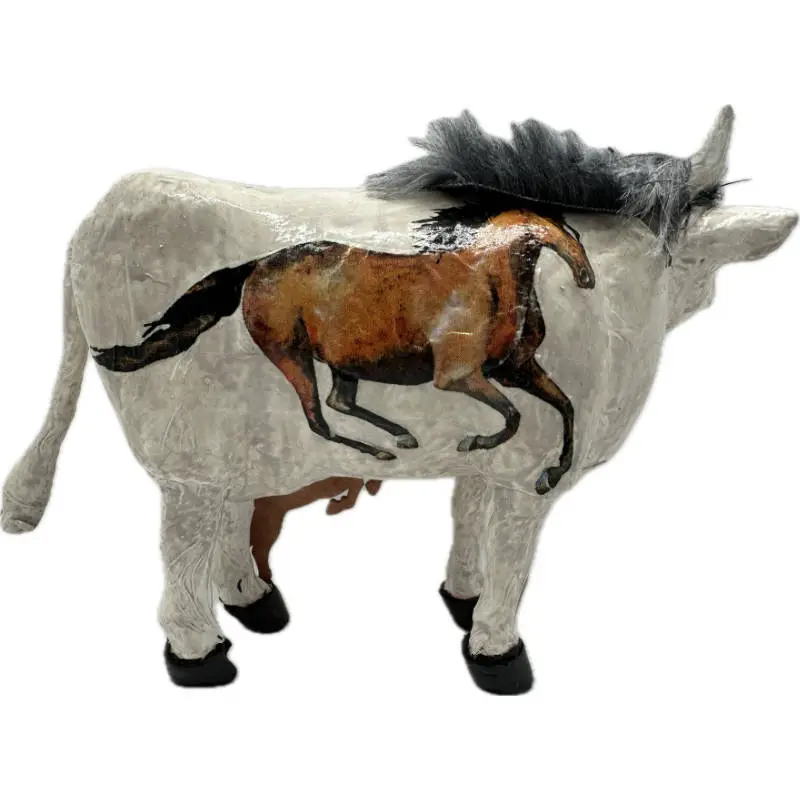 Découvrez la Vache décorative la CaraCOWle, une vache en papier mâché qui évoque l’année du Cheval de Feu. Façonnée avec soin à la main, cette figurine décorative apporte une touche fougueuse et asiatique à votre intérieur.
