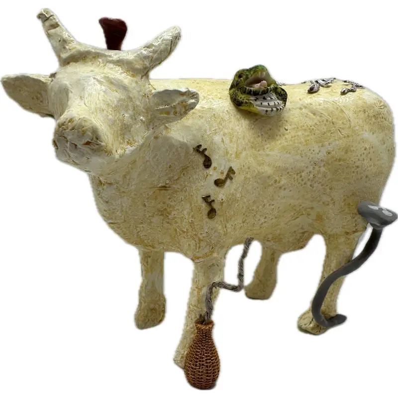 En effet, la Vache décorative la COWbra tire son nom d’un jeu de mots amusant combinant le terme « cow » (vache en anglais) avec ce redoutable prédateur. Chaque détail de cette création évoque son milieu naturel et ses ondulations…